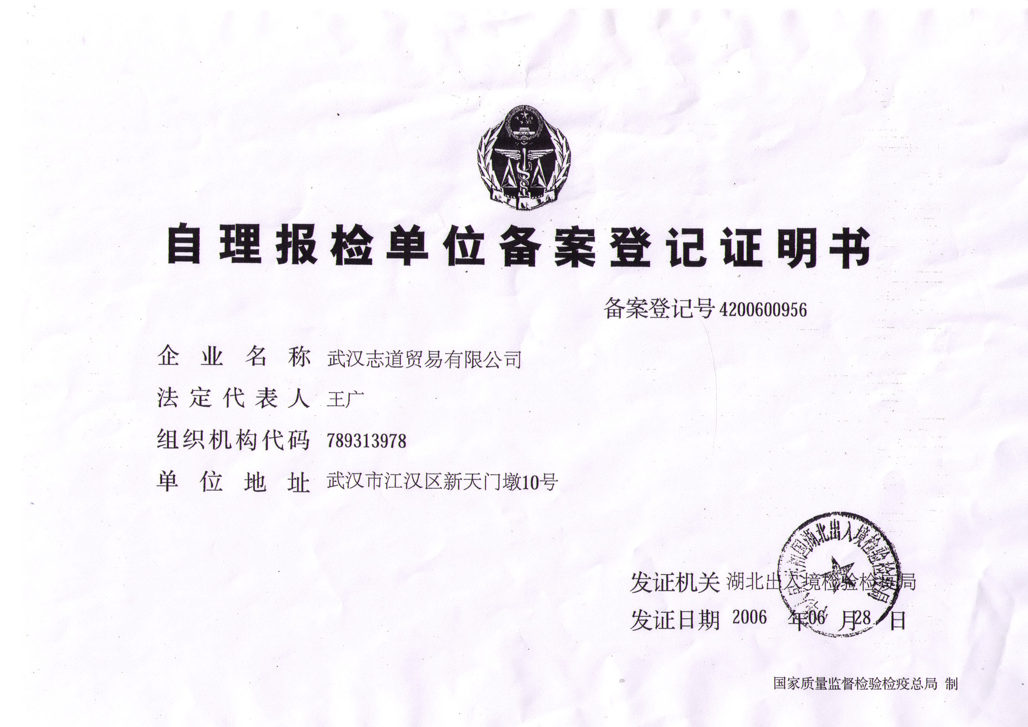 自理報(bào)檢證明書